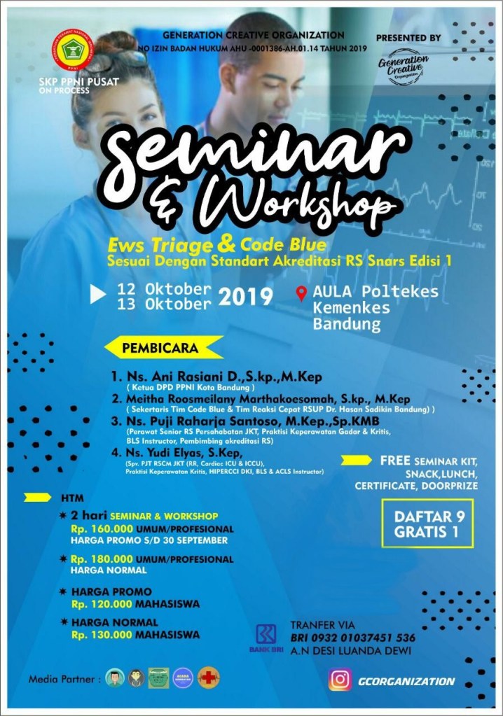 Yuk ikutan seminar & workshop dari Generation Creative Organization dengan tema “EWS Triage & Code Blue”